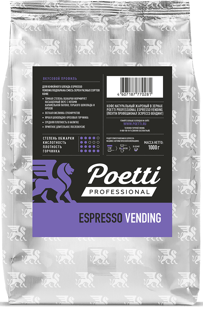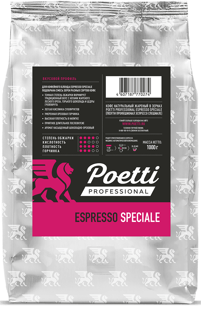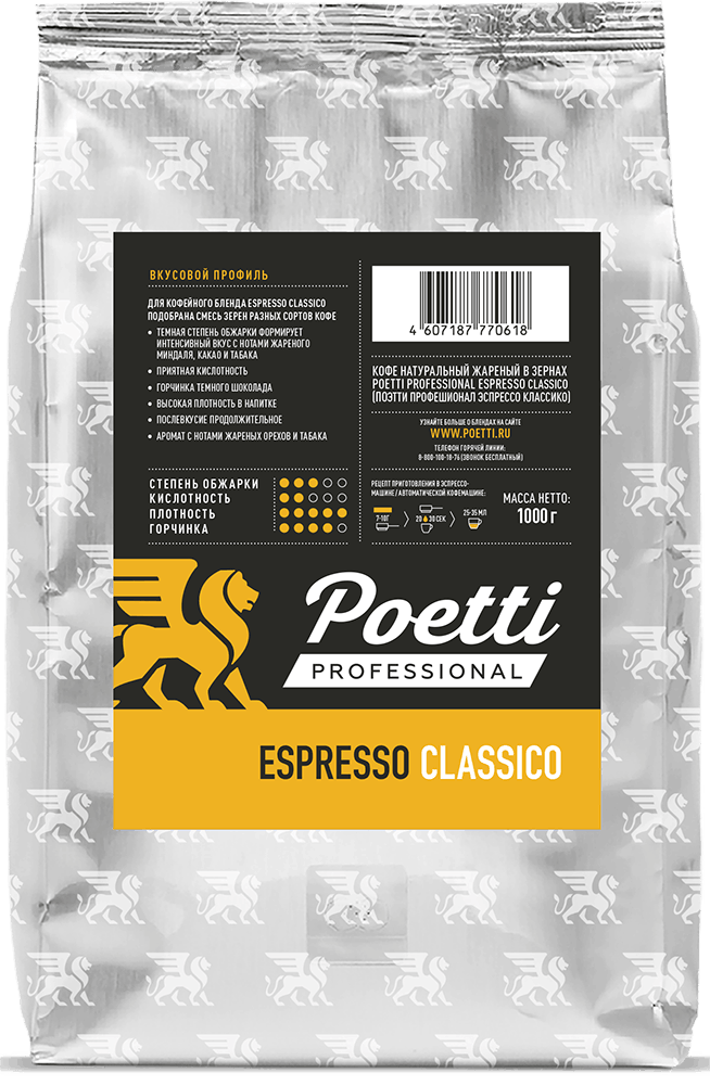 Кофейный бренд Poetti — известный и крупнейший в России производитель зернового кофе под одноимённым брендом. Зёрна для нашего кофе собираются в Латинской Америке, Африке и Юго-Восточной Азии. Мастера Poetti разработали целую палитру вкусовых сочетаний и нот, которые делают вкус нашего кофе уникальным и узнаваемым. Кофе Poetti идеален для приготовления в профессиональном оборудовании любого класса.